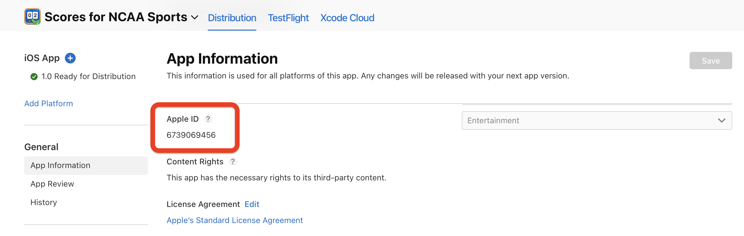 2. Apple App ID: Your iOS app's ID. If you're unsure of your app's ID, you find it in App Store Connect -> Select your App -> General -> App Information -> Apple ID: